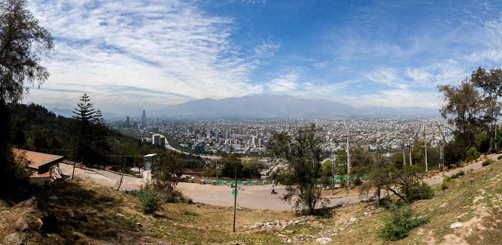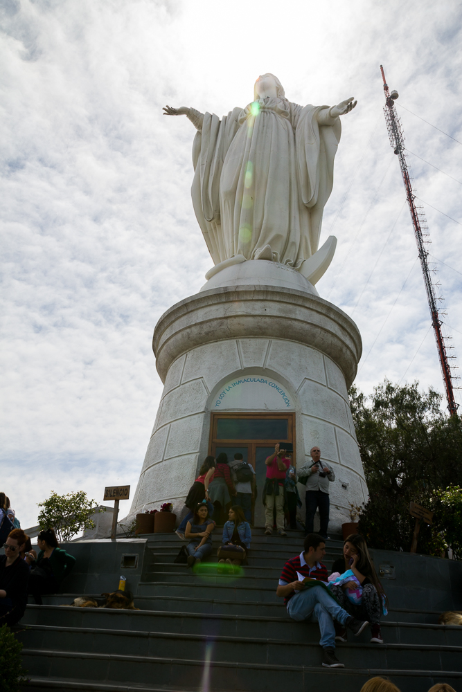 So um die Mittagszeit herum waren wir Cerro San Cristóbal, dem Stadthügel von Santiago, von dem man eine super Sicht über die ganze Stadt hat. Und das Wetter hat zum Glück mitgespielt.
