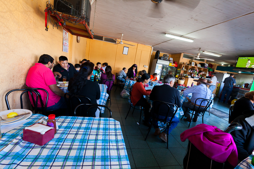 In Talca selbst hat es auch geregnet und da gerade kein Taxi zur Verfügung stand, gab es Abendessen im Hühnchen-Schnellrestaurant, aber auch das war lecker.