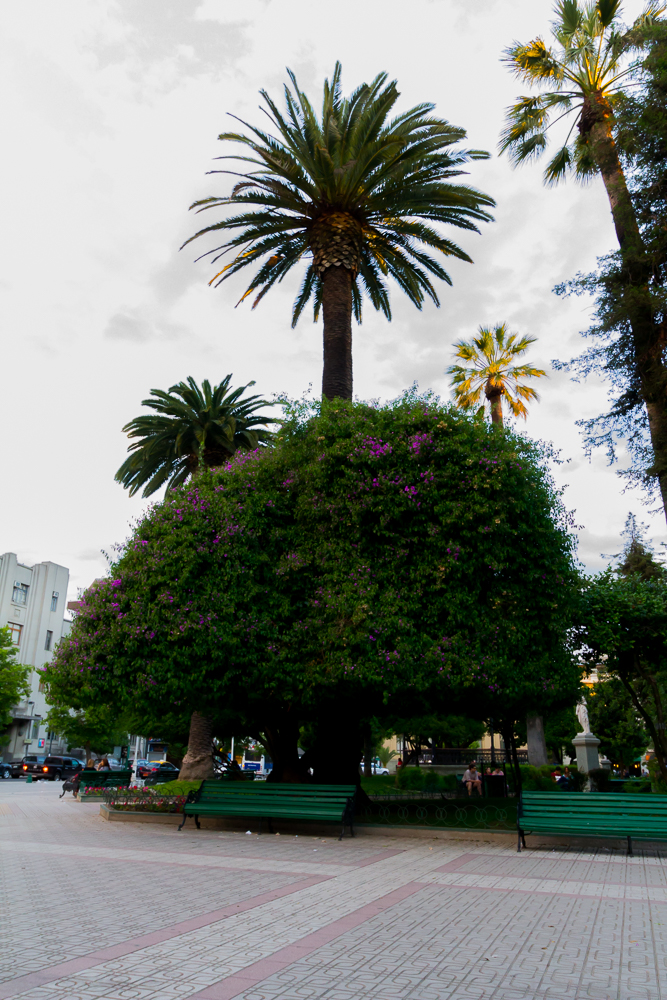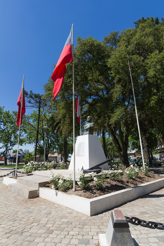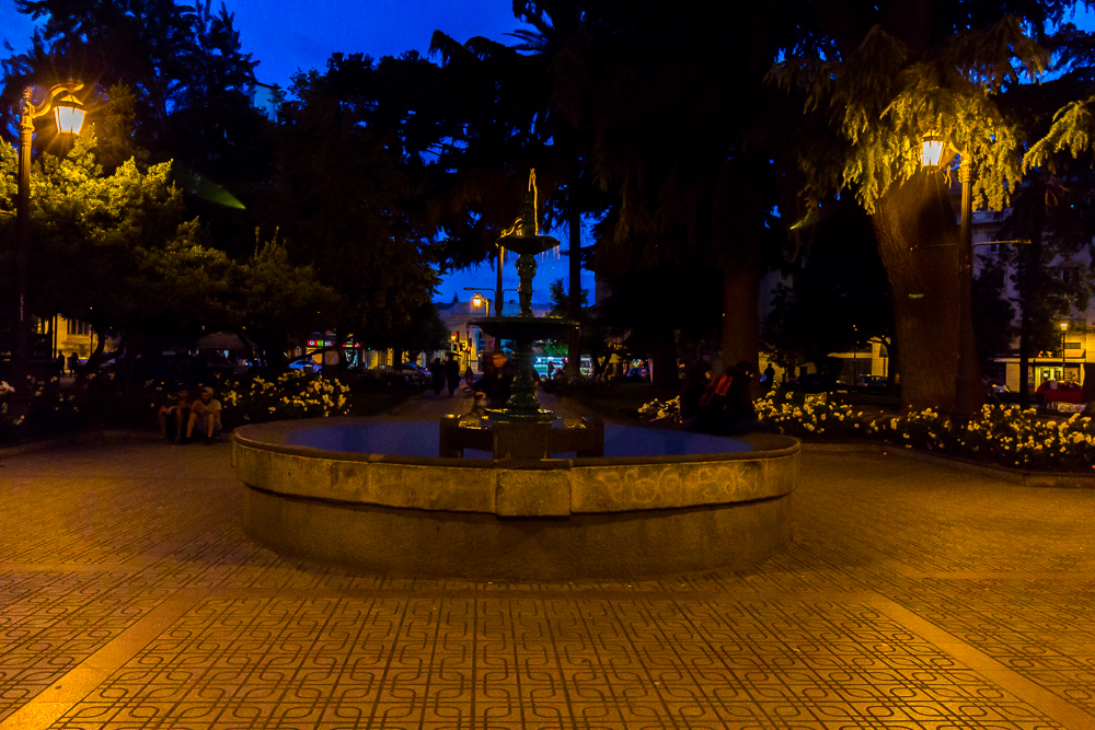 Danach sind wir zurück nach Talca um festzustellen, dass direkt vor unserem Hostel eine Touristeninfo ist. Großartig. Die hatte am Sonntag Nachmittag auch noch offen und der Angestellte hat alle Fragen beantwortet, uns Karten gegeben und uns auch auf einen kostenlosen Touristenbus hingewiesen, der jede Stunde von der Plaza de Armas eine Tour durch die Stadt macht. Das wollten wir am Abend machen. Also waren wir kurz vor 19 Uhr am Bus und der war voll. Für uns vollkommen überraschend. Gefühlt waren wir die einzigen Europäer in Talca (was sonst nicht zu den touristischen Highlights in Chile zählt und in Reiseführern als Durchfahrtsstadt erwähnt wird. Der Mensch in der Touristeninfo hatte uns auch gefragt, ob wir hier Verwandtschaft haben, der hat sich offenbar auch über Europäer gewundert. Talca ist also richtig ruhig und alles andere als überlaufen, uns gefällt es aber richtig gut. es scheint viele chilenische Besucher anzuziehen.)