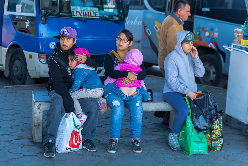 Kurz vor Santiago standen wir dann zum ersten Mal im Stau und das sollte auch den Tag so weiter gehen. Am Terminal in Santiago sind wir schon zu spät angekommen, so dass nur noch ein paar Minuten blieben, um den nächsten Bus zu suchen. Unsere Rucksäcke hatten wir mit den Transportnetzen gesichert doch damit kann man diese leider nicht normal auf dem Rücken tragen. Also sind wir ca. 10 Minuten am Terminal rumgelaufen und haben die Rucksäcke mit den Armen getragen, Muskelkater 🙂