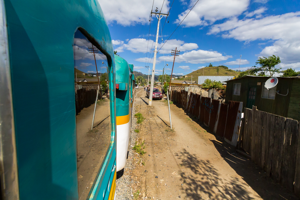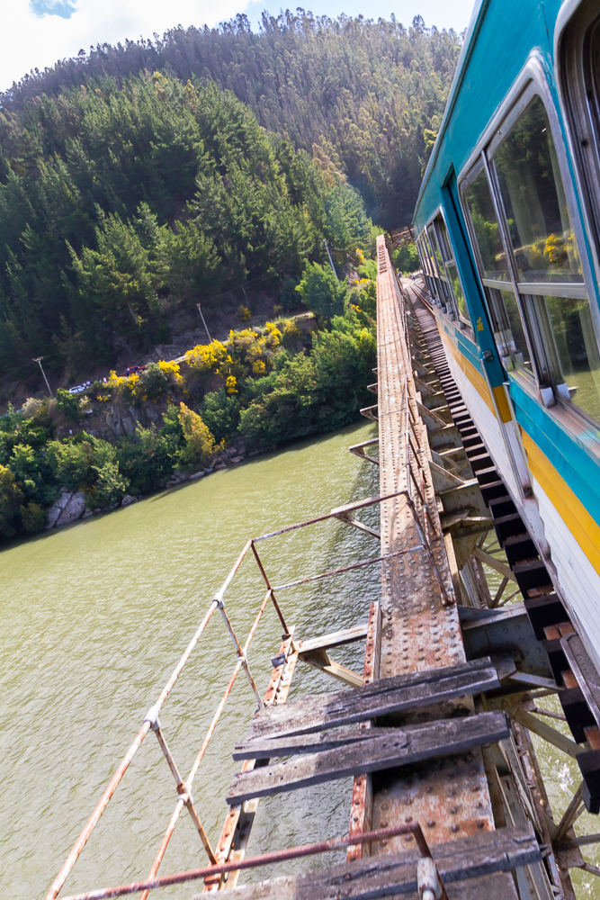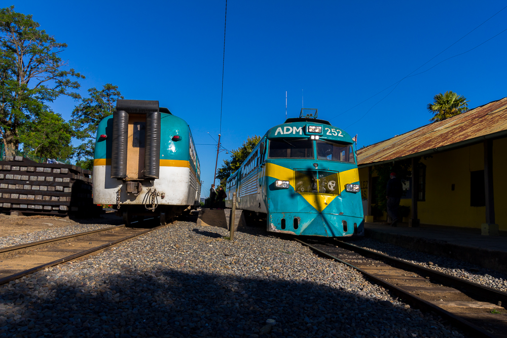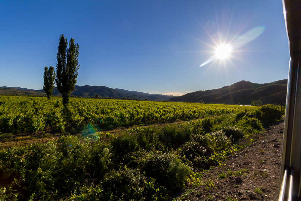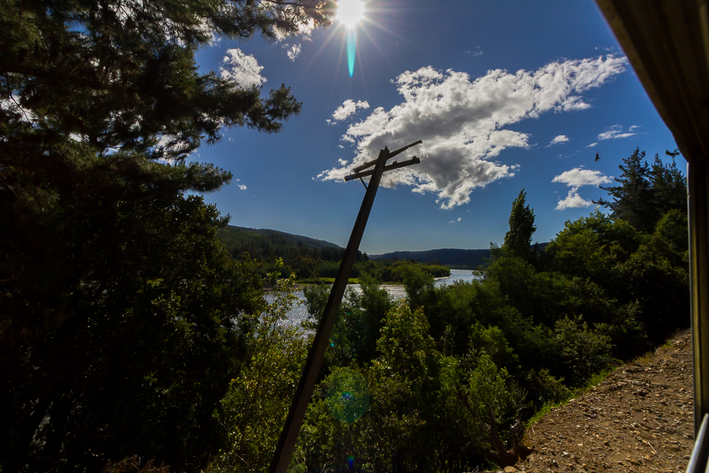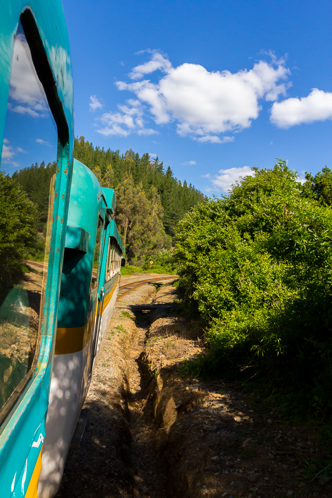 Nachtrag: die Busfahrt nach Constitution hat rund 90 Minuten für so 100 km gedauert. Im dem kleinen Ort hatten wir nicht viel Zeit, da nach ca. einer Stunde der Buscarril, eine Art Zug nach Talca zurück startete. Die Zugfahrt hat dann 3 1/2 Stunden gedauert und war grandios, linda um es auf spanisch zu sagen. Es geht laaaangsam durch eine wunderschöne grüne Landschaft entlang des Rio maule. Viele Weinberge gibt es obendrein. Irgendwann während der Fahrt (Kostenpunkt 2100 Peso, 3 Euro) setzte sich Claudio zu uns, ein ganz schön betrunkener Chilene. War echt schwer ihm zu folgen – und auch er hat irgendwann gemeint ich soll bitte spanisch sprechen – dachte das hab ich gemacht 🙂