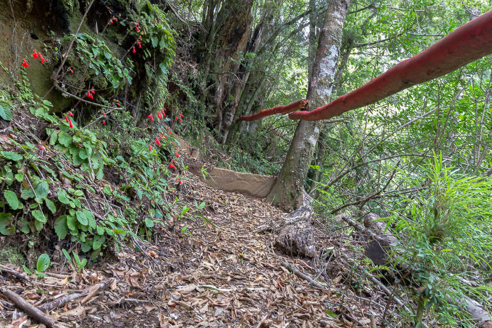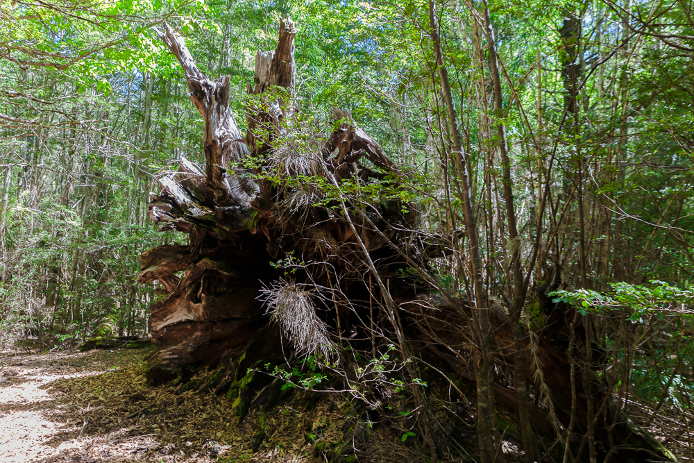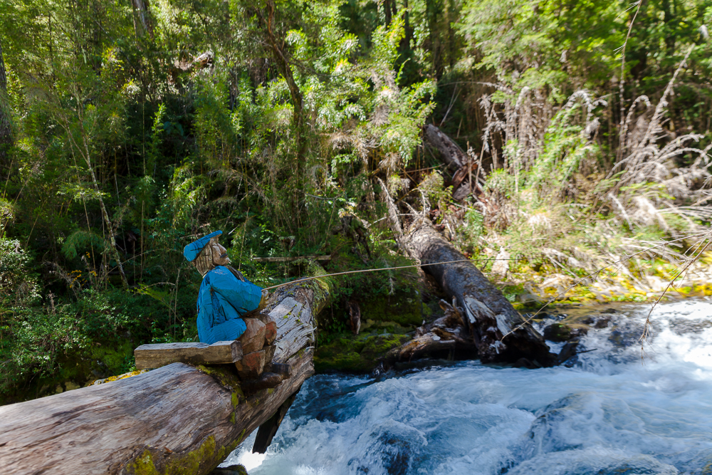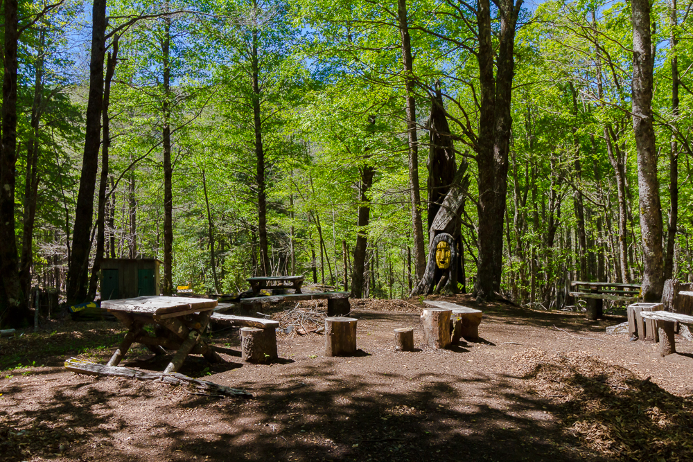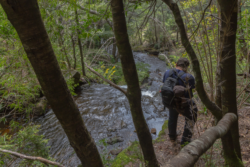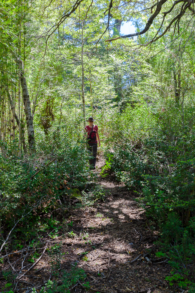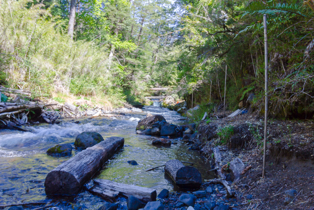 Den Samstag haben wir dann entspannt abseits aller Zivilisation angegangen. Nach dem Frühstück haben wir erst einmal ein wenig Postkarten und Reisetagebuch geschrieben und gegen 13:00 Uhr sind wir dann auf eine Wanderung durch den Wald aufgebrochen. Der Wald ist einfach toll, bis auf den kleinen Trampelpfad ist er nicht bewirtschaftet und ursprünglich. Über den Bach mit Wasser aus dem Eisfeld des nahen Vulkans führen nur dicke Baumstämme und zum Glück auch ein kleinerer Ast zum Festhalten.