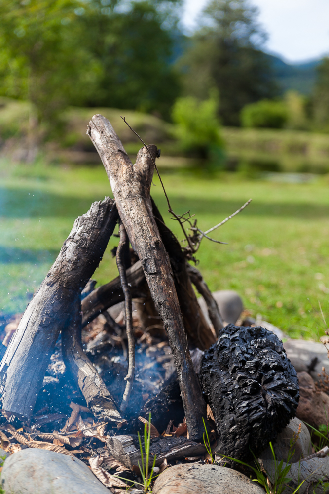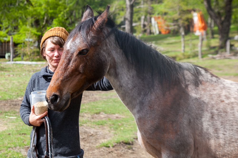Die Ranch ist einfach großartig. Wir hatten eine Hütte für sonst 6 Menschen für uns alleine. Da der Kühlschrank im Haupthaus noch nicht an war (Strom gibt es hier nur von einer kleinen Wasserturbine), haben wir ein Zimmer als Speisekammer erklärt. Nachts wird es hier noch richtig kalt und die ganze Hütte wird durch einen Holzofen erwärmt, den wir auch quasi direkt nach unserer Ankunft angemacht haben. 2 Stunden später waren es bestimmt 35 Grad, war wohl ein bissel viel Holz 🙂 Die Wärme war aber einfach mega angenehm.