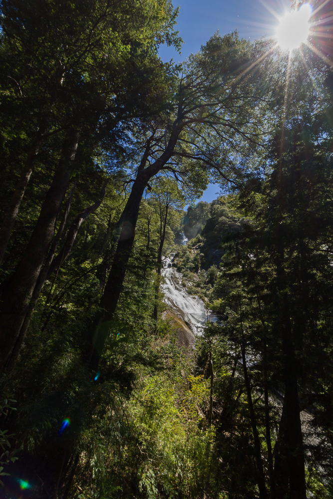 Die Busfahrt selbst dauerte eine Stunde und war angenehm. Im Park bezahlten wir den Eintritt von 5000 Peso pro Person und entschieden uns den gelben Weg „los Lagos“ zu den Seen zu laufen. Die Strecke ist mit 3,5h angegeben und so dachten wir, dass wir den Bus 14 Uhr zurück nehmen können statt den um 17 Uhr. Nicht den letzten Bus anpeilen für den Rückweg ist unser Plan, man weiß ja nie was kommt und ohne Campingausrüstung im Wald zu übernachten (wo man kein Feuer machen darf) gehört nicht zu den Dingen auf der Todo-Liste.