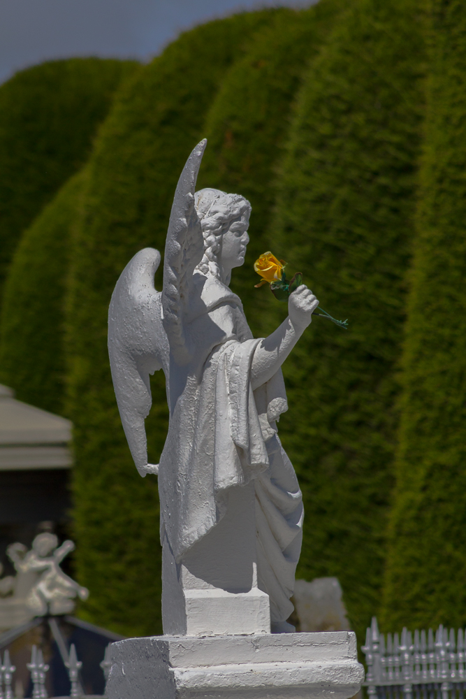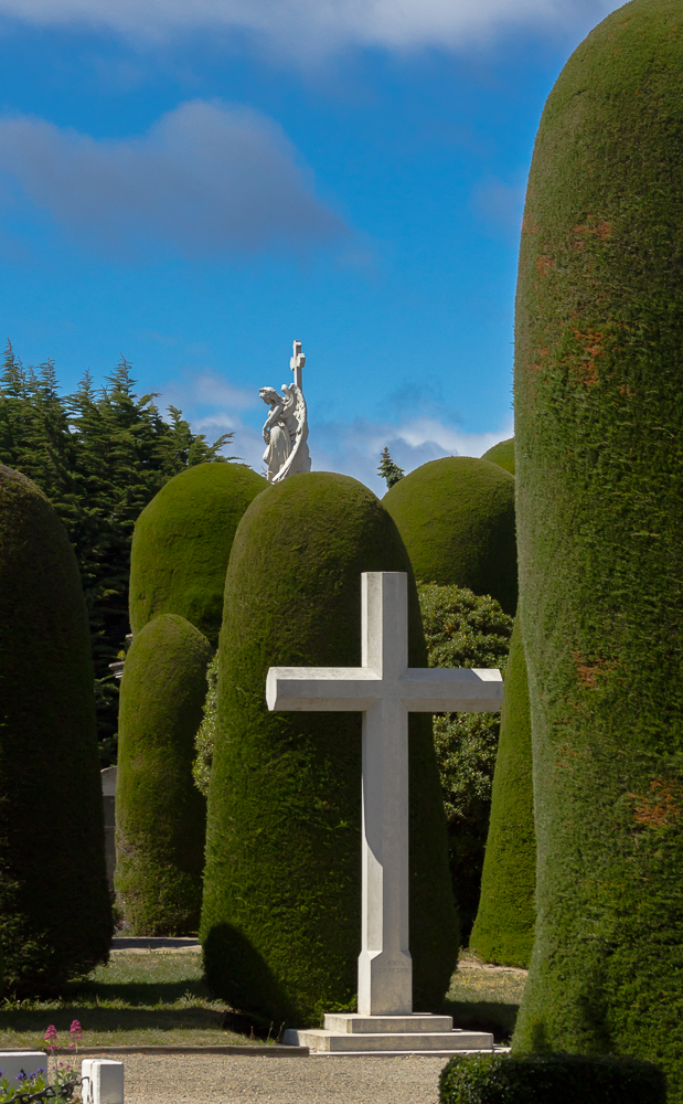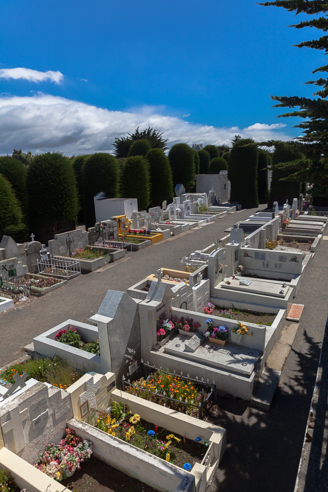 Im Anschluss haben wir noch ein wenig Fotos und Blogbeiträge bearbeitet und beim 4. Anlauf war auch irgendwann ein Bad frei. Gegen 11:30 Uhr sind wir dann zum nahe gelegenen Friedhof, der sowohl im Reiseführer als auch bei TripAdvisor als Highlight der Stadt beschrieben wird. Naja, für uns am Ende ein Friedhof wie es ihn vermutlich in jeder größeren chilenischen Stadt gibt. Der in Valparaiso war vergleichbar aufgebaut, also mit Gruften und pompösen Gräbern.