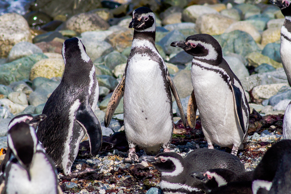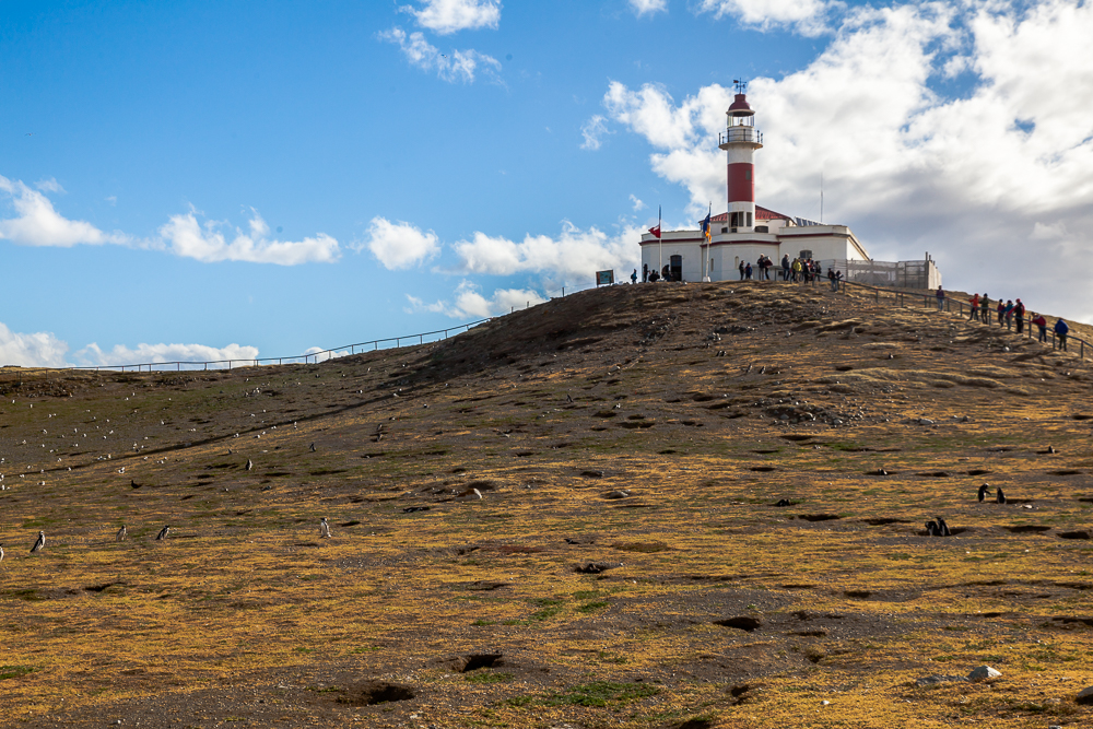 Direkt beim Verlassen des Schiffs auf der Insel sieht man dann auch schon keine 2 Meter entfernt Pinguine. Großartig. Die Tiere stehen am Strand, vor ihren Höhlen in dem gerade der Nachwuchs ist, oder laufen meist unbeeindruckt von den Menschen über die Insel. Über die Insel führt ein 1km langer Rundweg, vorbei an einem Leuchtturm, für welchen man über eine Stunde braucht – einfach weil es so viel zu sehen gibt. Traumhaft. Die Pinguine teilen sich die Insel auch noch mit ein paar verschiedenen Vögeln und die Arten leben friedlich zusammen.