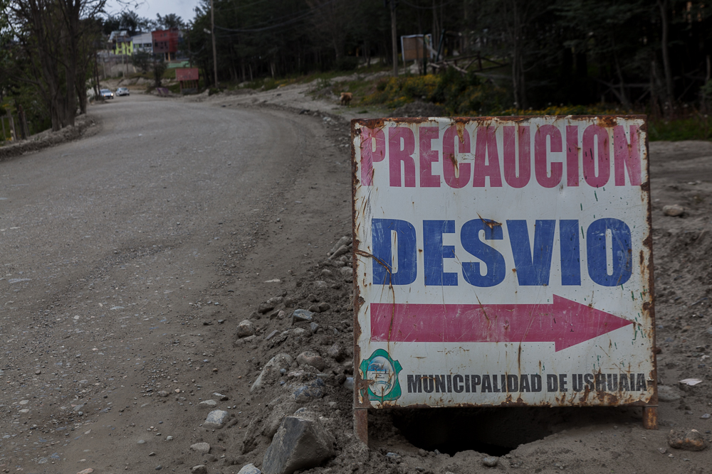 Danach ging es auf der Ruta 3, wieder asphaltiert, weiter nach Ushuaia. Bei Tolhuin gab es noch keine kurze Tank-Pause und dann ging es hinauf auf den Pass über die Berge, inklusive einer genialen Aussicht auf den Lago Escondido. Bei der Passfahrt haben wir dann gehofft, dass es mal einen Fahrerwechsel gegeben hatte. Es ging teilweise richtig steil nach unten.