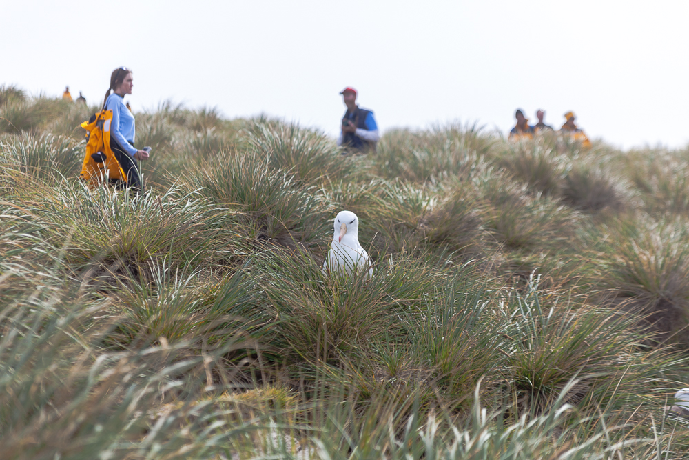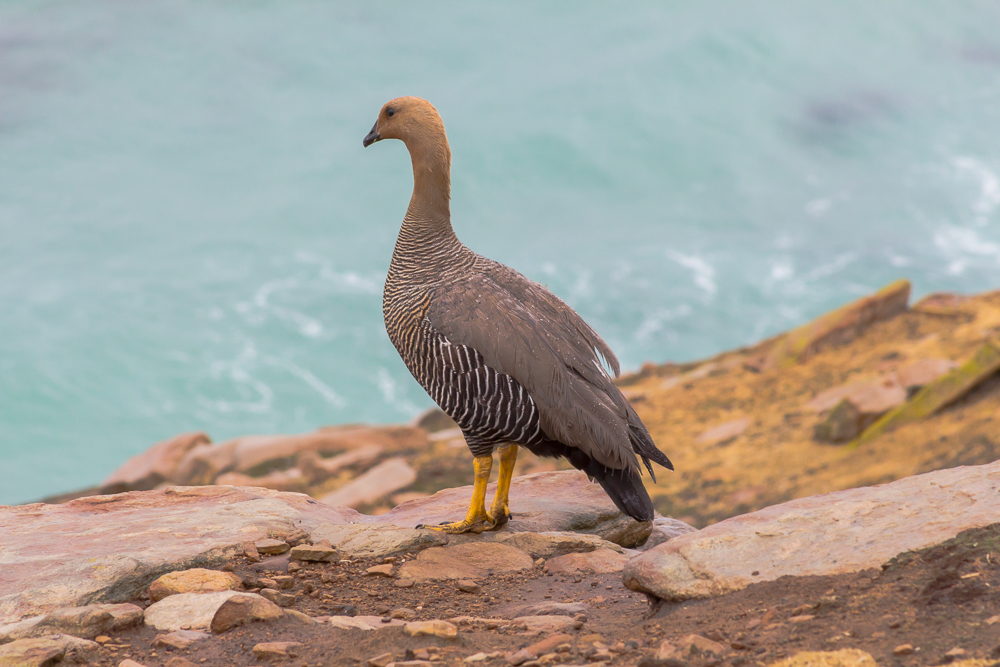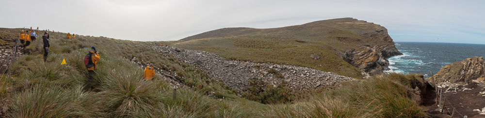 An diesem Tag ertönte schon um 7 Uhr der Weckruf. Wir hatten über Nacht die Falkland-Inseln erreicht. Nach dem Frühstück ging es um 08:30 Uhr zu unserem ersten Landgang – West Point Island im Nordwesten der Inselgruppe. Auf dem Zodiac gab es noch kurz eine Erneuerung der Security-Unterweisung und dann ging es auch schon an Land. Für die Passagiere mit Mobilitätsproblemen warteten an Land zwei Landrover als Shuttle zu unserem Ziel: Devils Nose. Wir sind die 2km über die Insel von der Ost- zur Westseite gelaufen.