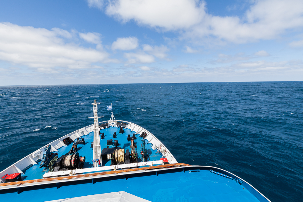 Weihnachten startete für uns mit einem allgemeinen Wecken um 07:45 Uhr, warum auch immer 😉 Der Tag war ein reiner Fahrt-Tag in Richtung Süd-Ost. Den Vortrag am Vormittag zu den Vögeln des Südmeeres haben wir geschwänzt, weil wir dazu schon einiges gehört hatten. Der Seegang war auch weiterhin deutlich zu spüren und vor dem Mittagessen wurde es Judith auch ein wenig flau im Bauch. Wir sind also zur Ärztin gegangen und sie hat Judith ein paar Pillen gegen die Seekrankheit gegeben. Von den Gummistiefeln haben wir beide auch Abschürfungen an den Waden bekommen und die haben wir ihr auch gleich gezeigt. Nach 2-3 Minuten kam sie dann mit Pflastern zurück – Mullbinden waren schon ausgegangen – am 5. Tag 😉 Zum zweiten Vortrag am Vormittag waren wir dann akademisch pünktlich. Es ging um die Entstehung und die Unterschiede der Gletscher in Süd-Georgien und der Antarktis.