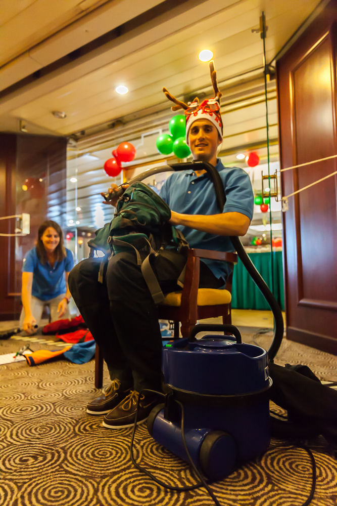 Im Anschluss ging es an die Biosecurity-Reinigung. Das hieß: wir mussten mit allen Sachen, die wir auf Südgeorgien mitnehmen wollten, zu einer Staubsaugerstation kommen. Dazu zählten: die Gummistiefel, Hose, Jacke, Mütze, Handschuhe und Rucksack. Wir hatten irgendwie eine gründliche Reinigung erwartet, also mindestens das die Rucksäcke, die wir schon seit über zwei Monaten quasi täglich im Einsatz haben, ausgesaugt werden. Aber alles wurde nur kurz angeschaut und mit „fine“ kommentiert. Alles bis auf Judith ihre ausgeliehenen Handschuhe. Ziemlich komisch. Gerade nach dem Video hätten wir vermutlich gründlicher gesaugt, als die Crew es gemacht hatte.