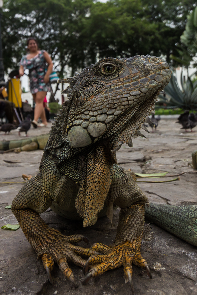Gut gestärkt ging es dann mit dem Taxi ins Zentrum (mit dem Taxi ist es der einfachste Weg und zudem auch günstig). A n der Kathedrale sind wir ausgestiegen und der Park davor war die nächste Überraschung. Auf den Wegen laufen und liegen Leguane und in einem kleinen Tümpel sind Schildkröten – willkommen in Ecuador 🙂