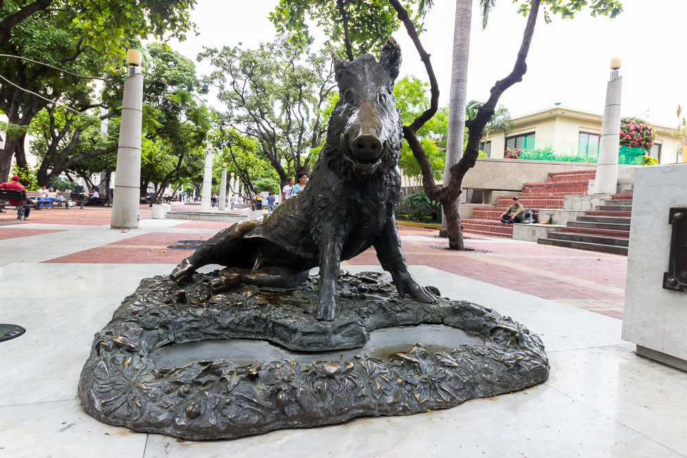Das letzte Ziel des Tages sollte eine Lichter- und Wassershow werden, von der wir angenommen hatten, die wäre jeden Tag. Aber die Fuente Monumental war leider aus und so garnicht monumental. Wir fragten noch einen Securitymann, ob heute noch etwas passiert, aber der hat uns nur auf den nächsten Tag verwiesen. Ach Apropos Security: in den Parks, Läden und auch bei der Zugfahrt sahen wir ganz viel bewaffnete und teils unbewaffnete privates Security-Personal. Auch auf öffentlichen Plätzen wie dem Malecon sieht man das, aber kaum Polizei. Das krasseste war, dass vor dem Parkhaus der Mall del Sol ein Securitytyp mit einer Pumpgun im Anschlag stand.
