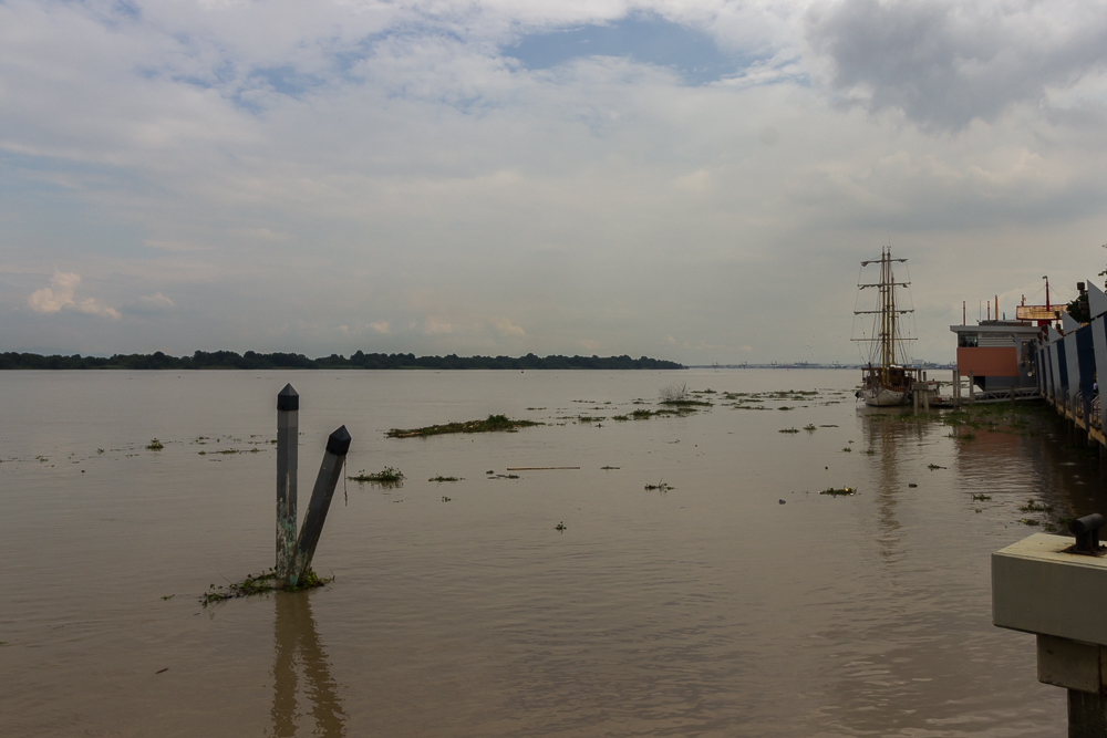 Gut gestärkt ging es zum Malecon. Am Anfang der 2 1/2 Kilometer langen Fußgängerzone direkt am Fluss ist ein kleines Einkaufszentrum. Dort gingen wir durch – vor allem wegen der Klimaanlage (32 Grad und 70-80% Luftfeuchtigkeit..).