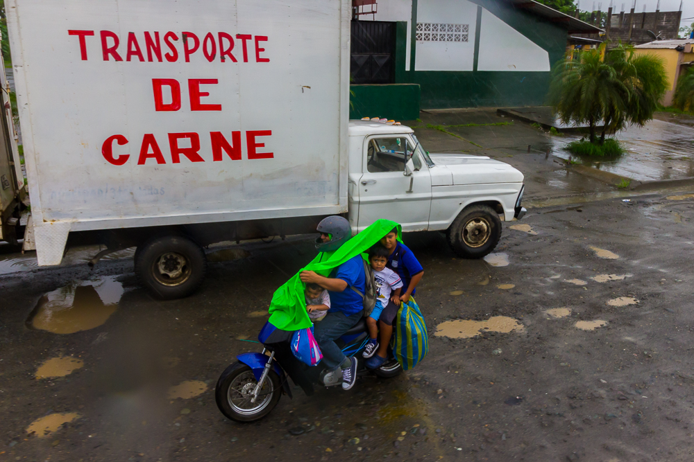 In Guaranda wurden wir am Marktplatz abgesetzt und fragten jemanden, wie es zum Busterminal geht. Der Beschreibung folgten wie 2 Blöcke, bis uns aus einem Bus heraus jemand fragte, wo wir hinwollen – weiterhelfen konnte er uns leider nicht. Dafür hat ein ca. Zwanzigjähriger das Gespräch mitbekommen und uns wieder zurück Richtung Marktplatz gelotst – er kam auch einen Block mit. Am Marktplatz entdeckten wir einen Pickup auf dessen Plane Salinas stand. Der Fahrer winkte uns auch gleich zu. Dann wurde es akrobatisch und eng. Auf der Ladefläche saßen schon 4 Schüler, ich sollte zu erst reinklettern und die 4 Rucksäcke entgegen nehmen. Für Judith war dann zum Glück auch noch Platz. Kurz darauf ging es auch los. Am Ortsausgang stieg dann noch eine Mutter mit ihrem Jungen zu und beide setzten sich auf die Klappe der Ladefläche und aßen ihr Essen weiter – wir hatten mit Festhalten genug zu tun.