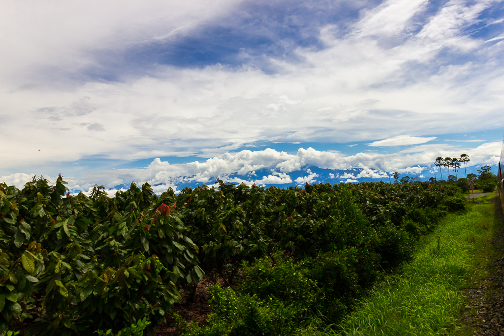 Am Freitag Morgen regnete es echt heftig, aber wir starten natürlich trotzdem. Um 7 Uhr war das Taxi da und eine halbe Stunde später erreichten wir den Bahnhof von Durán. Kurz nach 8 fuhr der Zug dann auch los. Die Zugfahrt führte für 3 Stunden durch Bananen-, Ananas-, Kakao-, Zuckerrohr- und Reisfelder/Plantagen in Richtung der Anden. Auf dem Hinweg gab es in Yaguachi einen kurzen Zwischenhalt. Der Zielort Bucay selbst ist eher unspektakulär. Die erste Hälfte der 90 Minuten Aufenthalt dort nutzten wir, um ein wenig durch das Zentrum zu laufen. Den Rest der Zeit verbrachten wir am Bahnhof mit einem leckeren Kaffee und geschmacksneutralen frittierten Bananen.