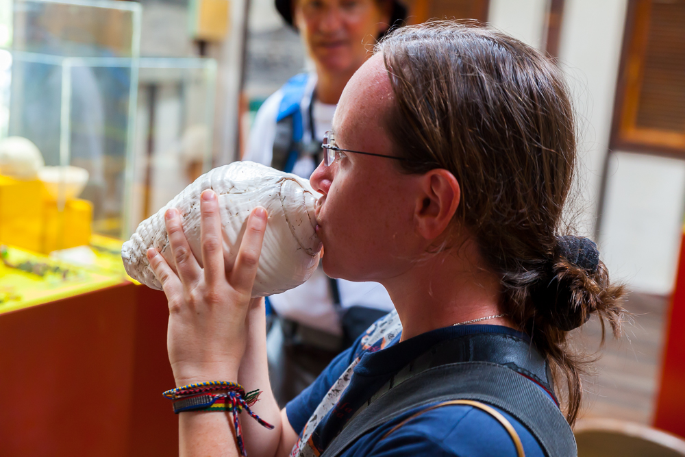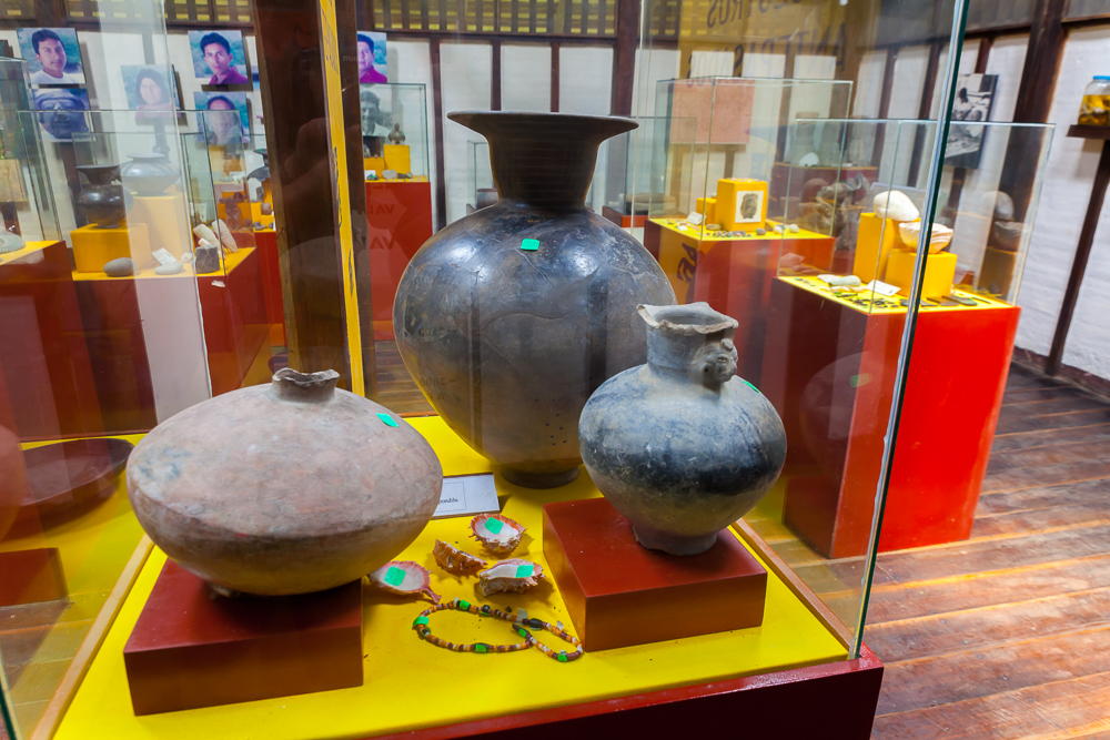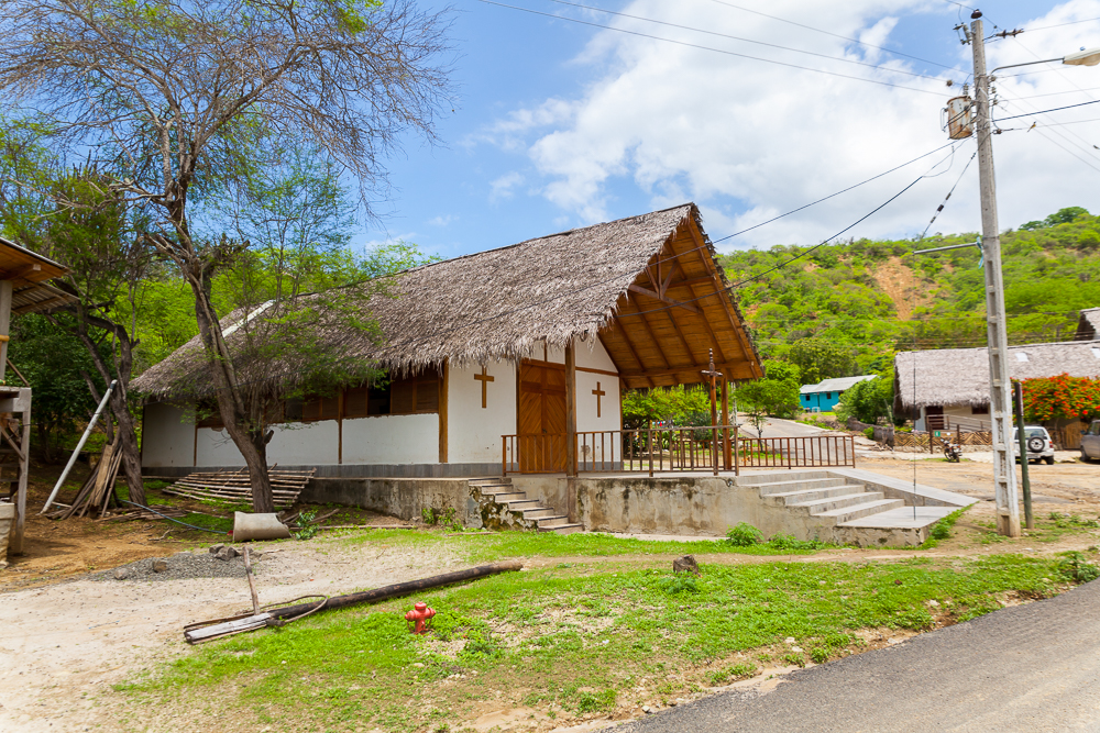 Den Montag, 13.02., starten wir mit einem lokalen Frühstück, bestehend aus Rührei, Erdnusspaste und frittierter Banane ohne Füllung. Danach ging es mit einem Motorrickscha zum Busterminal um von dort mit einem Bus nach Agua Blanca (weißes Wasser) zu fahren. Agua Blanca ist ein Dorf im Nationalpark Machalilla, in dem eine 2000 Jahre alte Kultur entdeckt wurde – also weit vor den Incas und co. Der Bus ließ uns und 4 ältere Kanadier an der Zufahrtsstraße zu dem Dorf raus. Dort ist auch gleich eine Art Pförtnerhäuschen, bei dem pro Person 5 Dollar zu bezahlen sind. Der Pförtner hat kurzerhand alle 6 Menschen, die vor ihm standen, auf ein Ticket geschrieben. Auf die Frage, ob es zum 5km entfernten Dorf ein Shuttlebus gibt, lächelte er nur: „no“. Also ging es zu Fuß, in der Mittagssonne über die Schattenfreie Straße zum Dorf. 30 Grad und 80% Luftfeuchtigkeit waren nicht soooo die besten Bedingungen. Nach ca. einer Stunde war das Dorf aber erreicht und zum Glück gab es einen kleinen Laden, bei dem man Wasser kaufen konnte – unsere 2 Liter waren quasi leer. Die Kanadier (2 Ehepaare) kauften sich jeder eine Flasche Bier und tranken die aus – wir wären umgefallen bei den Temperaturen. Neben dem kleinen Laden war eine Sitzecke im Schatten wo wir alle erst mal entspannten und ins Gespräch kamen. Die 4 anderen sind für 5 Wochen in Ecuador, weil es in Kanada gerade so kalt ist 😉