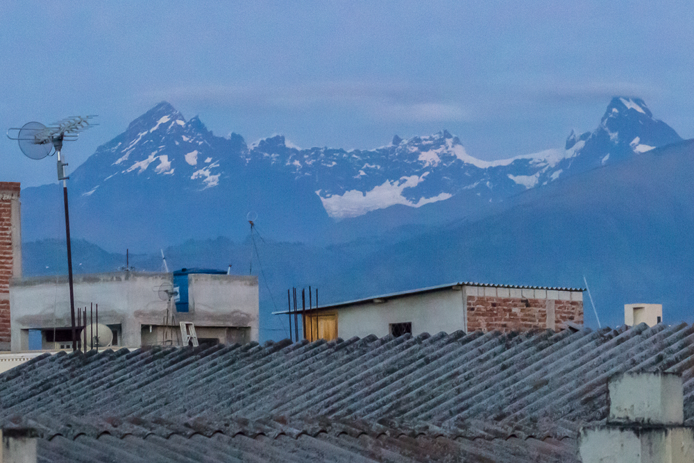 Ist im Flachland die Fahrweise der Busfahrer noch ertragbar, hört bei Andenpässen der Spaß auf. Bergauf einen LKW überholen – ohne Sicht, sei es durch Kurven oder durch Nebel auf 3600 Meter Höhe – ist einfach keine gute Idee. Bremsen – Gas gegeben – bremsen – mehr bremsen – Gas geben um voll in die Kurven zu gehen, hinter denen es hunderte Meter Berg ab geht – bei Regen.. Zum Glück war Zwischendurch für ca. 30 Minuten eine Pause – auch weil das Klo im Bus nicht benutzbar war. Und irgendwann war dann auch Riobamba erreicht. Mit einem Taxi ging es zur Unterkunft und dort wurden wir echt überrascht. Wir hatten ein ganzes luxuriöses Apartment für uns. Kaffeemaschine und Saftmixer waren auch da. Was gibts besseres. Der erste Eindruck war auch, dass Riobamba deutlich leiser ist als Guayaquil. Außerdem war das Klima auf 2700 Meter angenehmer – auch wenn weniger Luft zum atmen da war, was sich auch bemerkbar machte. Wir gingen jedenfalls erst einmal los um Milch für den Kaffee zu besorgen – was schon in einer kleinen Stadtbesichtigung endete. Am späten Nachmittag sind wir dann noch mal richtig los, um das Zentrum zu erkunden. Durch Zufall fanden wir auch einen Laden, in welchem direkt im Schaufenster eine der so lange gesuchten Kaffeemaschinen stand. – gekauft haben wir sie aber erst am nächsten Tag 🙂 Riobamba erwies sich als recht übersichtlich, alle relevanten Punkte der Stadt waren von unserem „Schloß“ zu Fuß zu erreichen. Abends gingen wir dann nur noch mal ein Block weiter, um für 5,25 Dollar ein leckeres Abendessen zu bekommen.