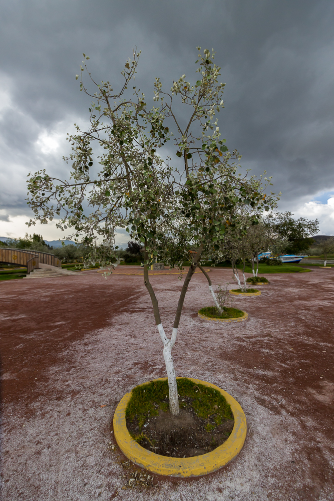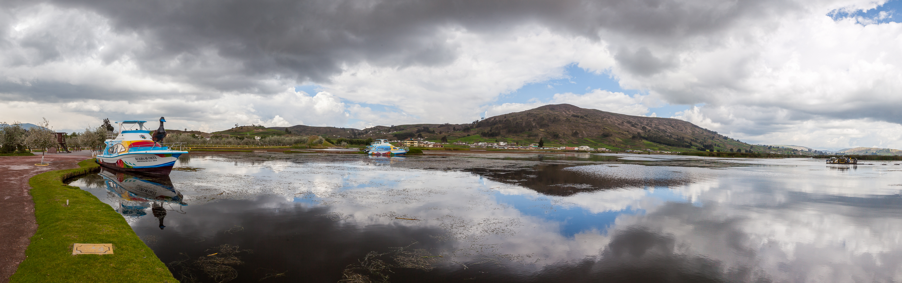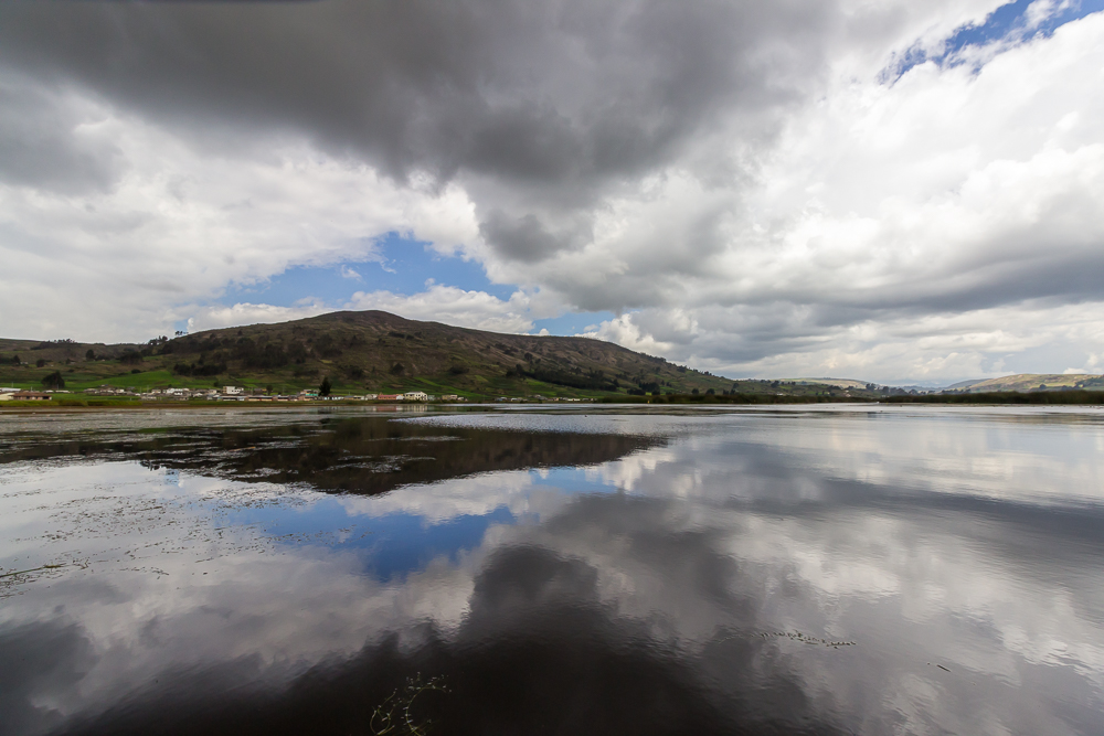 Gegen Mittag gingen wir dann aber zu Touri-info, um zu Erfahren wie man zur Laguna de Colta kommt. Ein junger Franzose, der dort gerade arbeitete, verwies uns an einen Tourenanbieter eine Querstraße weiter. Die hatten leider geschlossen. Wir hielten einfach ein Taxi an und fragten, wie viel eine Fahrt zur Lagune kosten sollte. 8 Dollar fanden wir für die halbe Stunde Fahrt mehr als ok. Die Laguna de Colta liegt auf 3300 Meter Höhe und dient vermutlich eher Einheimischen für einen kurzen Wochenend-Ausflug. Jedenfalls waren wir die einzigen Besucher – aber es gab einen Wachmann, der die  1,20 Dollar Eintritt kassierte. Von der Lagune hat man bei guten Wetter einen schöne Sicht auf den Chimborazo, den höchsten Berg in Ecuador (Funfact: die Spitze des Berges ist der am weitesten vom Erdmittelpunkt entfernte Punkt der Erdoberfläche) – aber wir hatten nicht das perfekte Wetter dafür, es tröpfelte auch ein wenig.