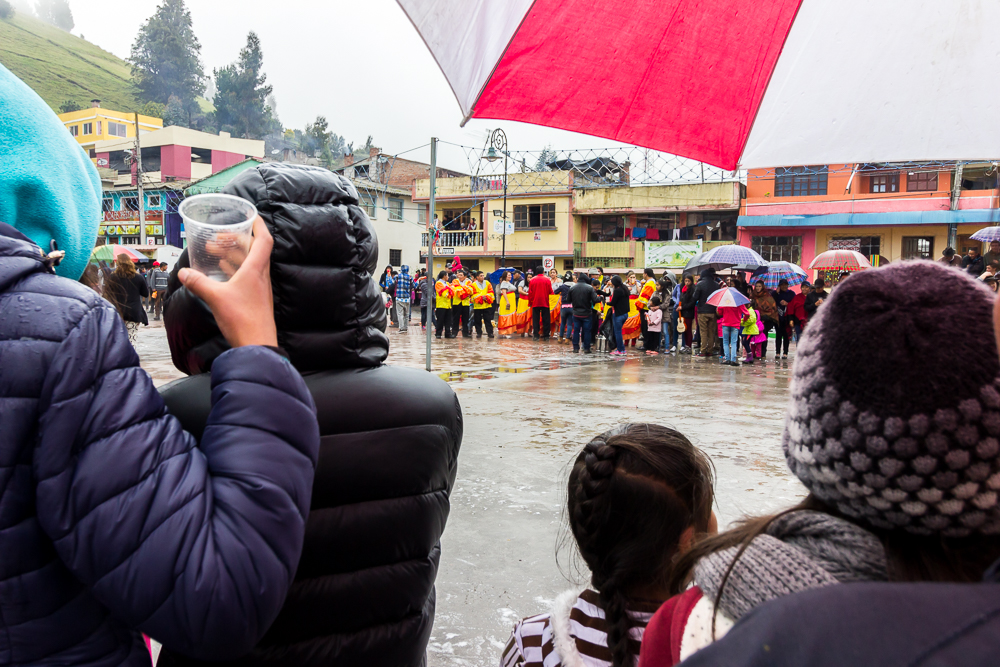 Unser Ziel am Dienstag, 21.02., war Salinas. Laut Reiseführer ein kleines Bergdorf, bekannt für guten Käse und Wurst. Die üblichen Reiseportale wie Booking.com oder Hostelworld kannten den Ort nicht, aber im Reiseführer stand eine kleine Pension, die wir schon zwei Tage vorher per Mail angeschrieben hatten und auch gleich eine Antwort bekamen. Wir wussten auch, das wir erst nach Guaranda müssen und der Bus dahin startete auch pünktlich. Auf den ersten Kilometern lief im Bus schreckliche elektronische Musik aus den 2000dern… Das könnte jedenfalls die Fahrweise erklären. Eine Stunde später überquerten wir erst im Niesel- und dann im Schneeregen, einen Pass auf knapp 4400 Meter Höhe. Die Bergabfahrt war dann wieder, naja, sagen wir ecuadorianisch.