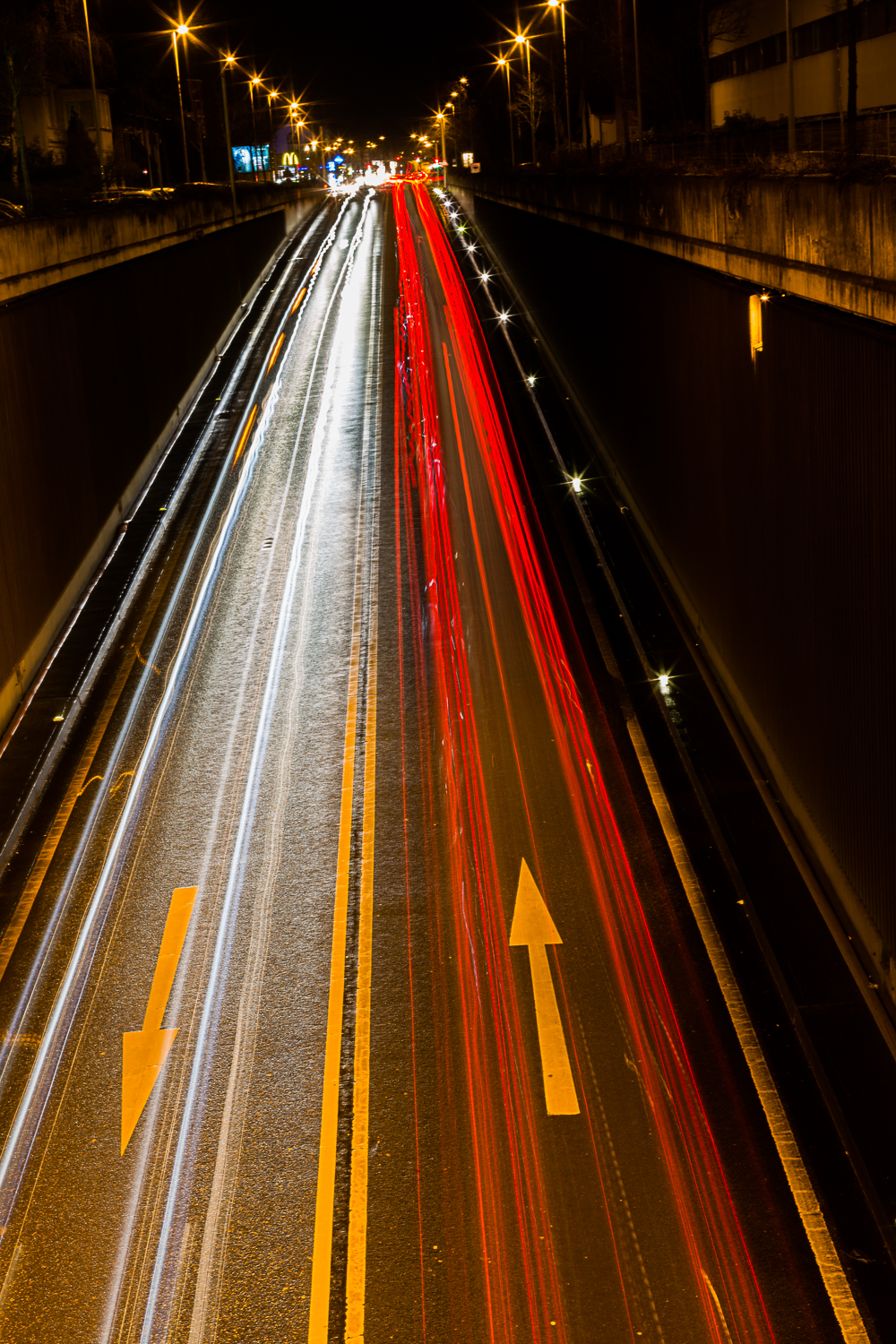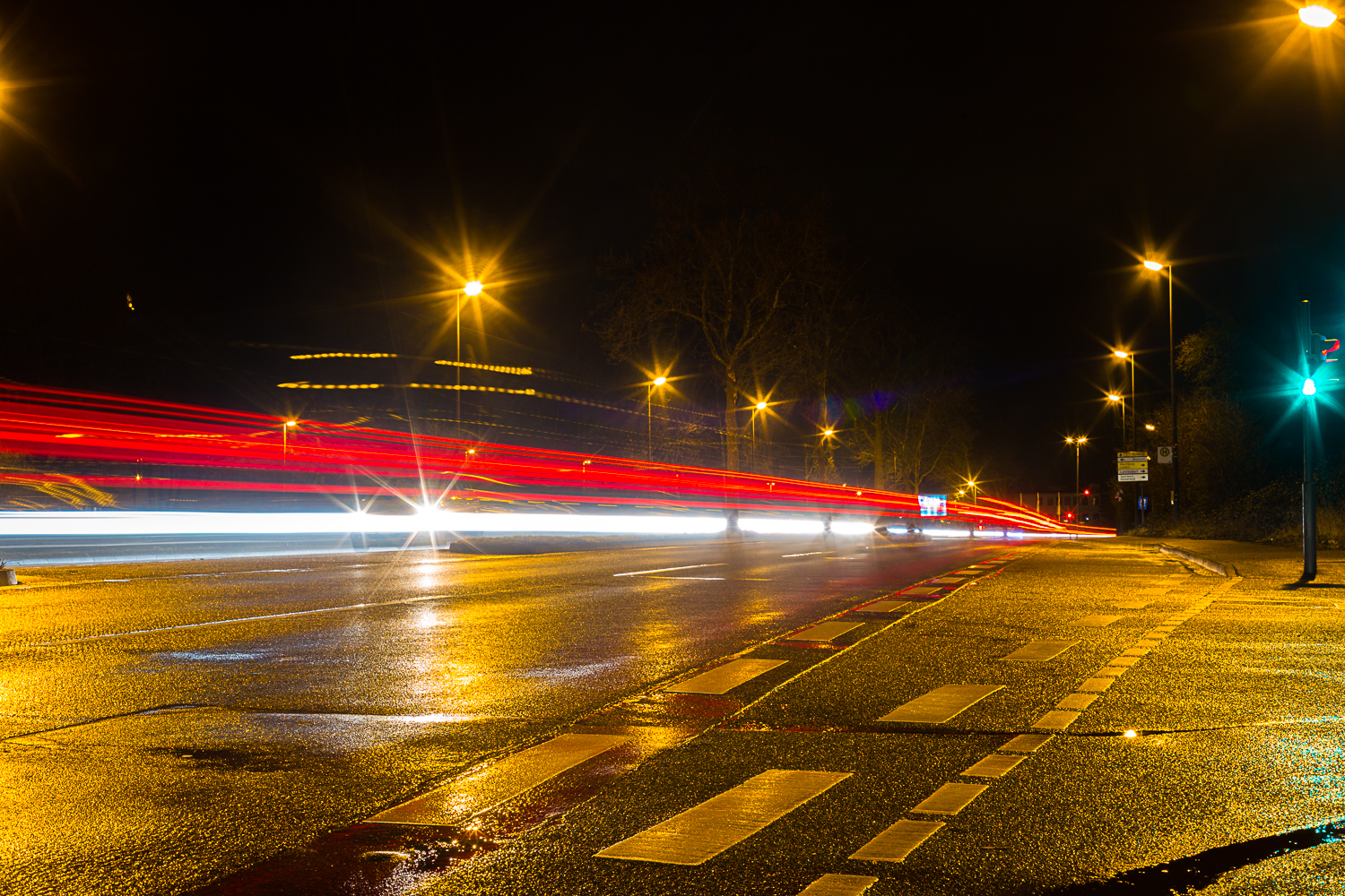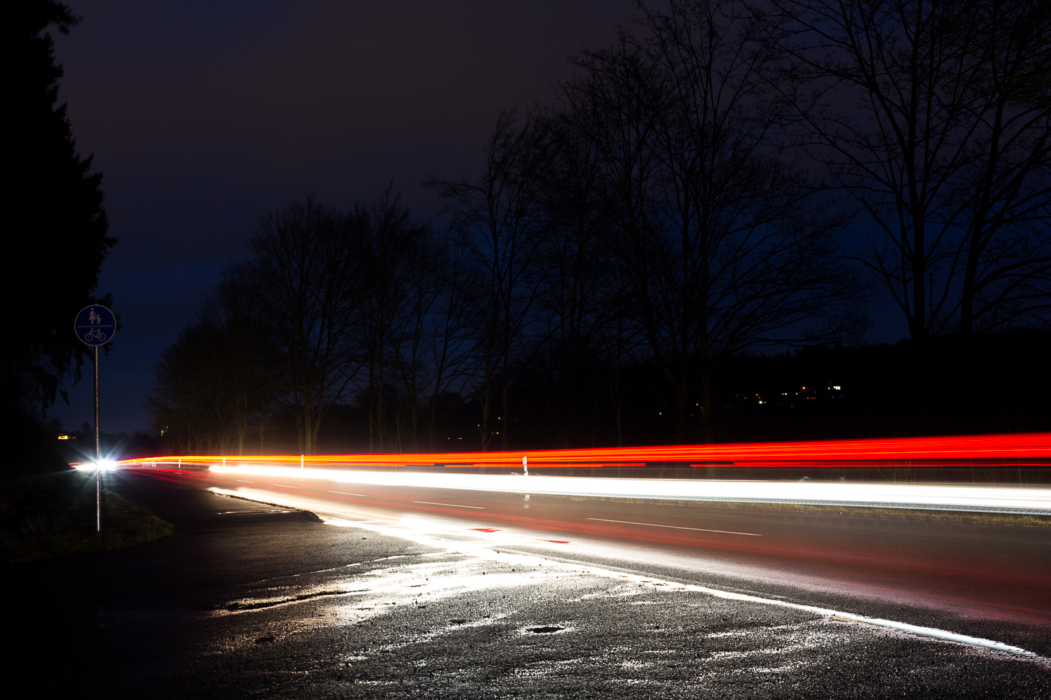Das 9. Thema im Projekt 52 ist „Lichtspuren sichtbar machen“. Mit einer langen Belichtungszeit sollen die Spuren von z.b. vorbeifahrenden Fahrzeugen sichtbar gemacht werden.