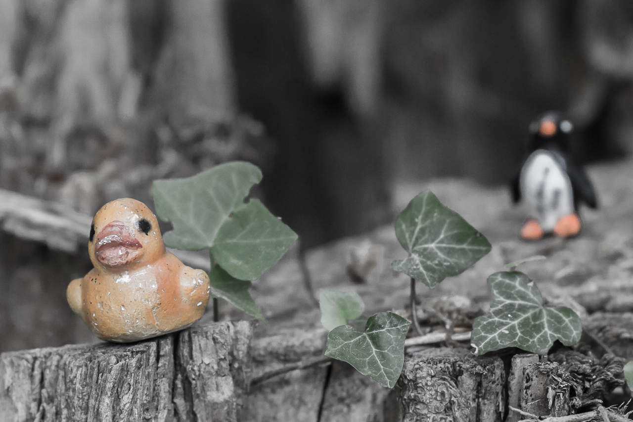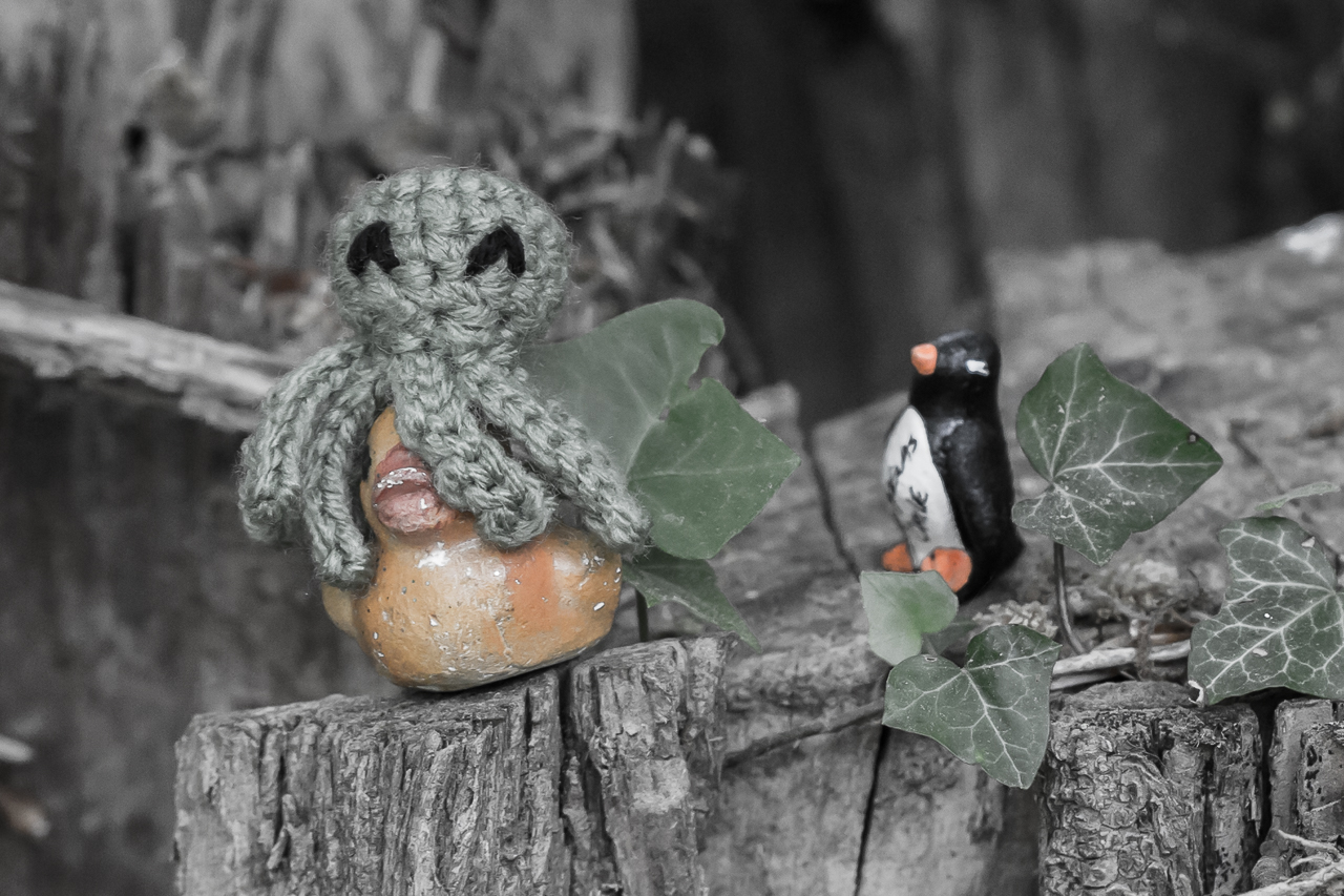 Ich hab so ganz zufällig einen Pinguin gesehen, der im Wald steht. Kommt dann auch ganz zufällig eine Ente vorbei und wird von einem Octopus als Mahlzeit angesehen. DerPinguin will helfen aber naja, am Ende hat der Waldboden alle 🙂